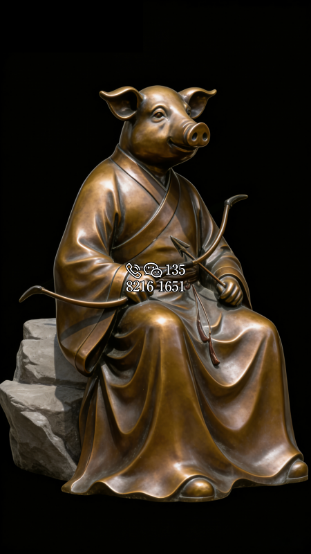 獸首人身鑄銅生肖亥豬雕塑
