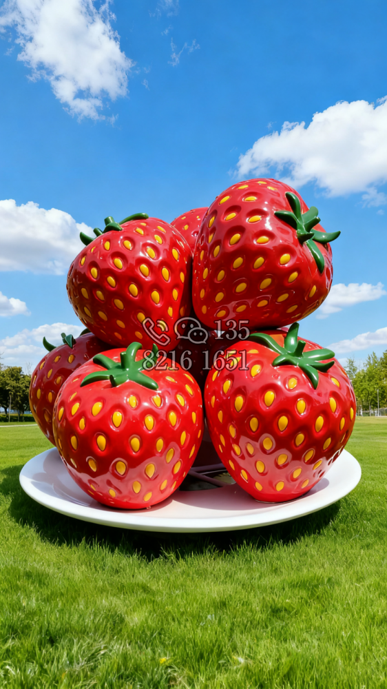 玻璃鋼仿真草莓果盤雕塑