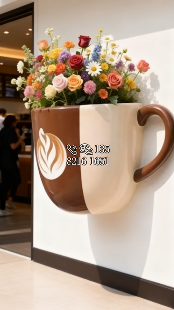 咖啡店門口墻面裝飾咖啡杯雕塑