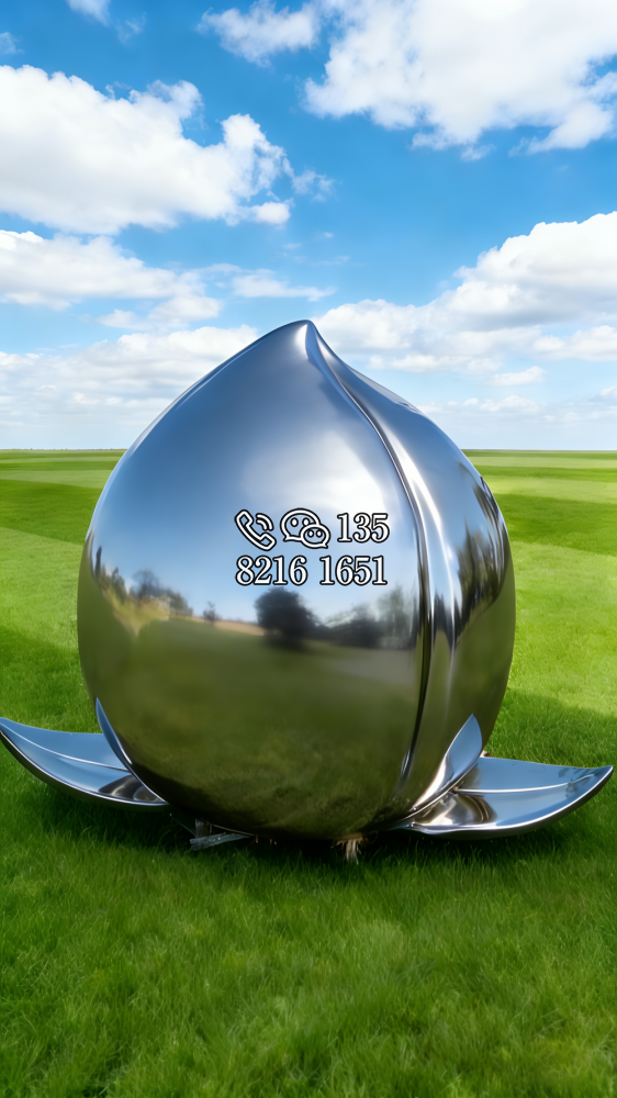 鏡面不銹鋼桃子雕塑 (5)