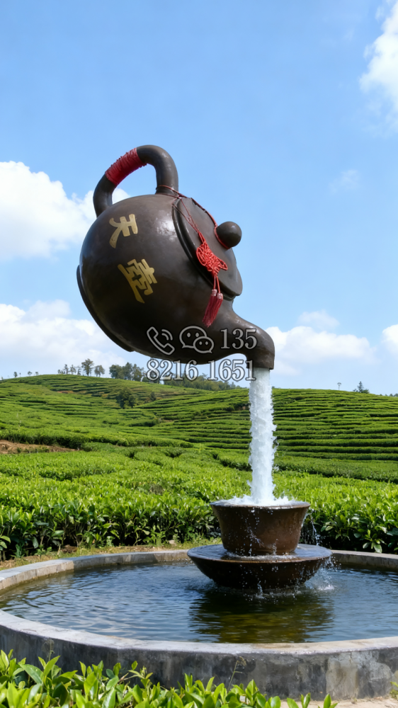 玻璃鋼材質(zhì),仿陶罐,大型流水景觀雕塑。總高6米,頂部陶罐長(zhǎng)1.26米,中間主體陶罐高4.1米,去除底部一圈陶罐和外部飄帶造型,內(nèi)置水管水泵,水被抽入頂部陶罐,再?gòu)奶展蘅诹舫?,形成水流源源不斷永遠(yuǎn)流不完的錯(cuò)覺(jué)。