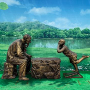 老頭小孩下象棋 玻璃鋼